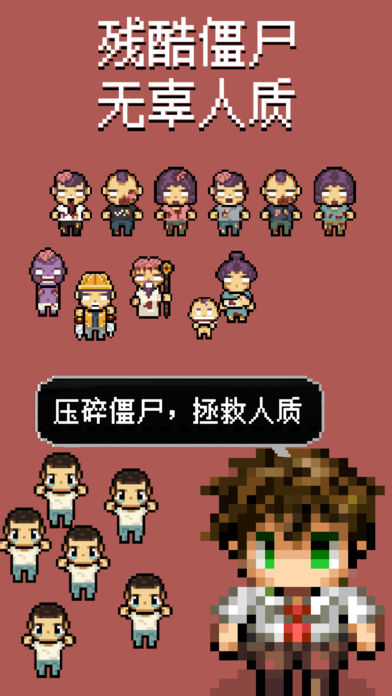 像素僵尸是一款末日题材的僵尸对抗游戏。玩家在游戏中可以通过点击屏幕,攻击可怕的僵尸。游戏中有多种种类的僵尸,各有各的特色。你的任务就是从残酷的僵尸手下救出人质!快来试试吧!