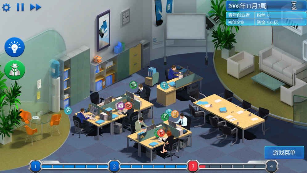 2、《手机帝国》的核心玩法是研发更好的图纸、升级更牛的科技、打造更强的团队、研发更好的手机、赚取更多的利润,如此循环。而“如何用人”是整个游戏的精髓所在,根据员工的能力、天赋和技能,把合适的员工放到合适的岗位才会发挥出其最大潜能。员工的配合还会触发团队突破效果,这是一个可以让你突破科技限制从而创造奇迹的新机制。