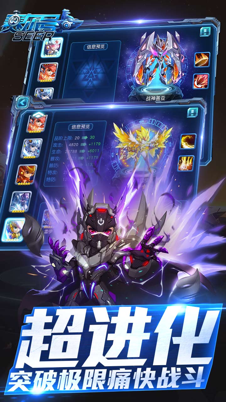 2、突破极限,三段进化:通过进化获得更加酷炫的形态、更加强力的技能、更加强大的属性!突破精灵极限,征战浩瀚宇宙!