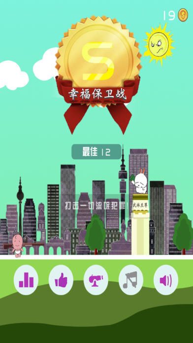 幸福保卫战是一款以打到流氓兔为最终目标的手机冒险游戏。游戏中的大boss流氓兔超级流氓!你为了保卫大家,决定站出来,打败他。游戏的操作简单,界面简约,魔性的画风绝对能让你爱不释手,快来试试吧!