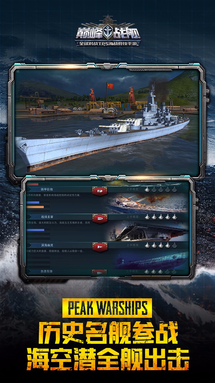 巅峰战舰ios版手游是一款第三人称射击类的手机游戏,这款游戏也是以海战为题材的,玩家们在游戏中将会融入到海战之中,本作中玩家们可以进行一些射击活动,能够进行开舰艇哦,而且还有很多的舰艇提供给玩家们进行使用。