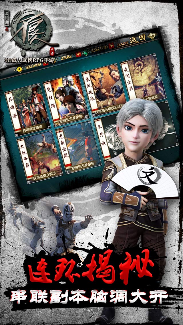 《不良人》不良人视觉盛筵级的全新3D战斗场景与特效强劲的战斗技能、想战就战的实时PVP对战……更有神还原的爆笑剧情和传说中神秘的龙泉宝藏等你开启!一日是不良人,一辈子都是不良人。
