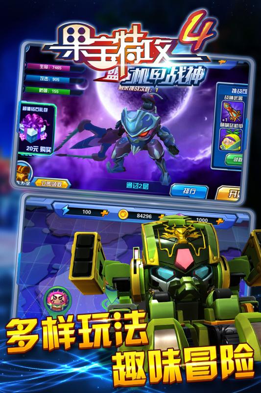 《果宝特攻4机甲战神》是一款根据热门动漫改编而来的动作冒险游戏,将化身为炫酷的机甲置身于科幻的世界与,各种怪兽展开激烈的对决!每一个果宝特攻拥有自己独特的技能,极限的操作激发内心强大的奥义,热血的战斗战神再次合体,感兴趣的快点来下载游玩吧!!
