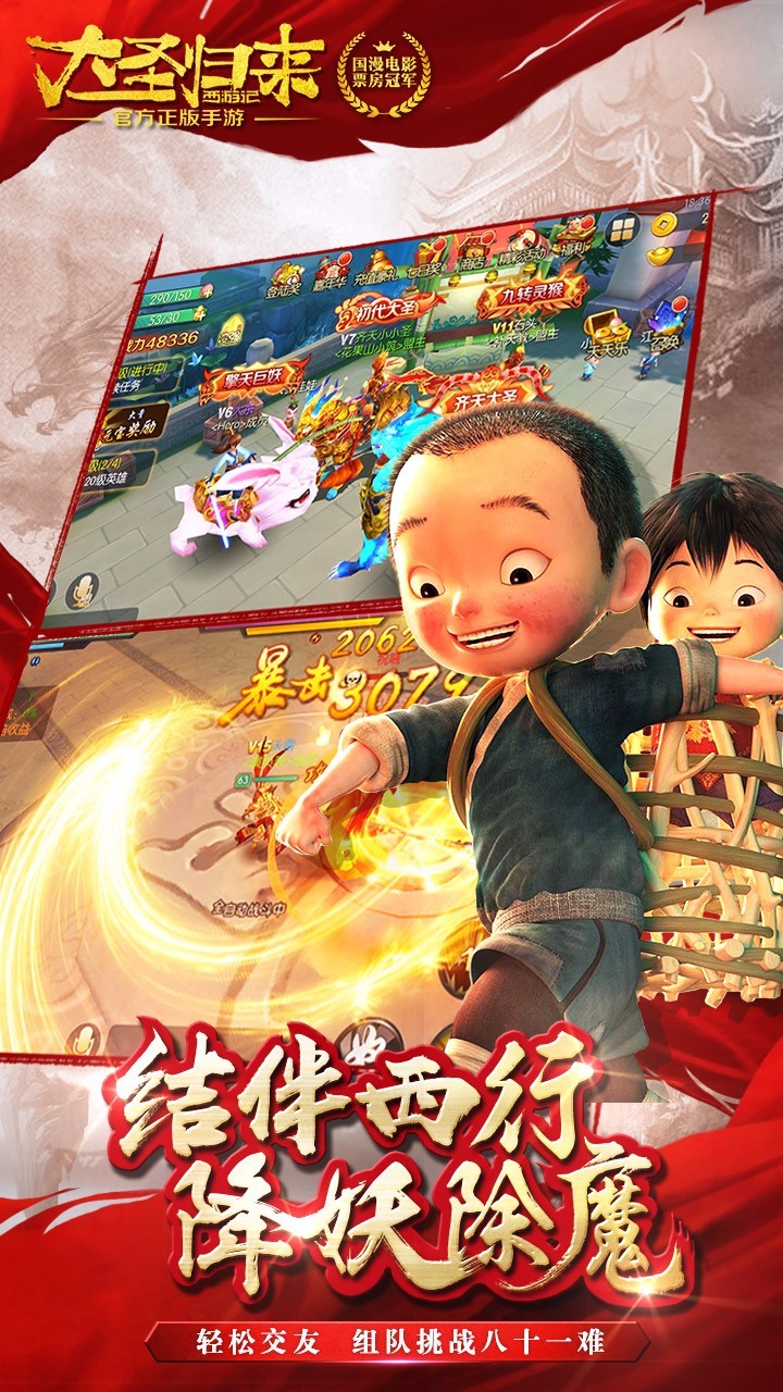 《西游记之大圣归来》是一款由同名电影正版授权的ARPG手游巨作,游戏打造出来一片全新的东方魔幻的西游世界,在这里玩家可以展开热血刺激的战斗和冒险,同时更有庞大的剧情和全新的秘境等待你来挑战!