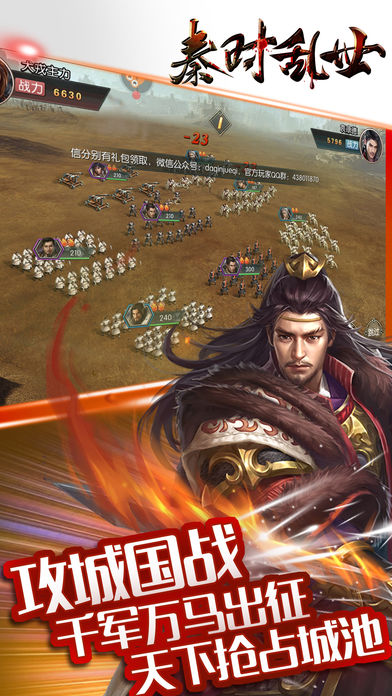 3、春秋战国时代,各方势力纵横捭阖。城主之间,亦敌亦友,欲在这乱世中脱颖而出,不仅考验你排兵布阵的能力,更考验你总揽大局的智慧。合理发展城池建设,勇敢统帅武将部队,将自己的策略发挥到极致,必能在这纷争不断的乱世,君临天下。
