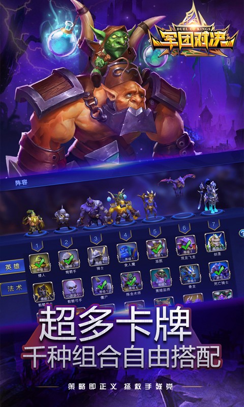 手动施放法术卡牌增援战场,让你的军团碾压敌军!