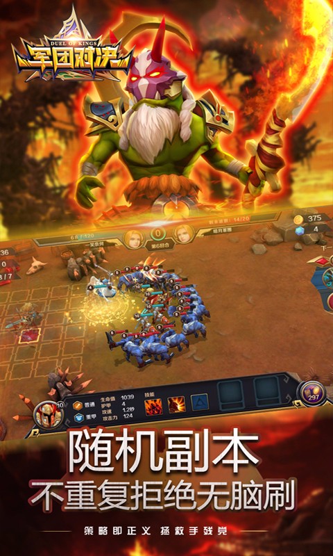 《军团对决》是一款全新的卡牌对战策略手游,完美融入策略塔防与实时竞技的元素,同时采用欧美卡通的画面风格,是一款适合全年龄段的休闲竞技手游。游戏简单易上手,甚至不用教学都可以玩得懂,但其中又蕴含卡牌搭配、兵种护甲相克、兵种进化、兵线控制、法术释放等多种策略,使游戏可玩性与深度得到极大的提升,真正实现了易上手难精通。复杂多变的战局同时也会给您带来高潮迭起的刺激体验。