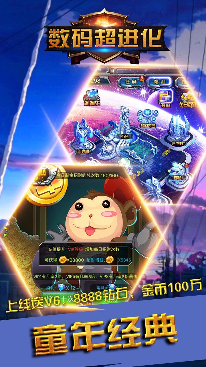 《数码超进化》游戏有着超炫酷的武器,都等着你来收集、培养、升级!单人竞技、多人团战、公会系统、多彩活动,游戏遵照原著的故事情节,制作出完美的游戏剧情,每个数码宝贝都是按照原著的进化要求来设定,让玩家可以享受完整的故事,游戏操作简单,容易上手,适合玩家休闲娱乐!赶快来体验吧!