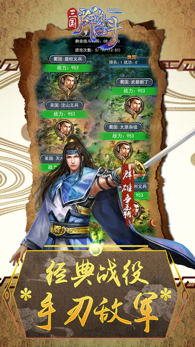 三国群雄乱斗是一款非常考验一个人的策略性的三国题材手机攻防游戏。游戏中你将化身一方势力的主公,通过招募武将,招兵买马,获得强大的战力,然后在这片大陆上,尽情地施展自己的策略吧!
