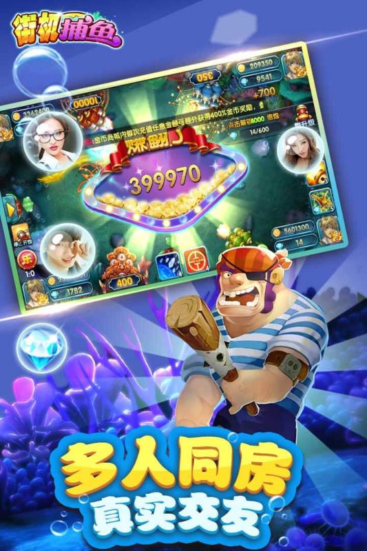 1、原经典街机捕鱼效果,绚丽画面,丰富玩法,真实交友趣味生动!