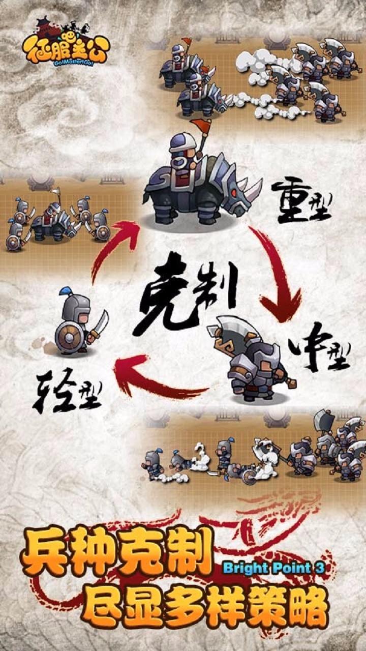 征服吧主公ios版手游是一款三国背景的卡牌游戏,三国兵种搭配类型的策略玩法,画风挺小清新的,卡通Q萌类型,美术质量不错,简单有趣的核心战斗方式!期待你的加入!