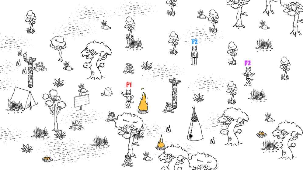 脱力的看火猫们,打起精神守卫自己的篝火吧,看看谁能让篝火烧到最后,成为“传火”之王!