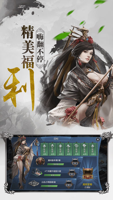 4、游戏更是为玩家暖心打造了公会系统,茫茫征战路,你并是势单力孤,自由申请加入公会,各路专业大神带你一起逐鹿中原,参与工会建设的同时还可获得多种吸睛福利,还不快快踏上这热血征途!