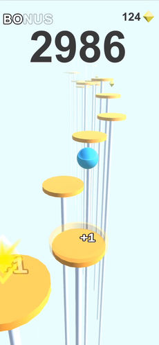 触摸屏幕,动动手指移动球。跳跃到新的平台上,画面清新,十分耐玩。