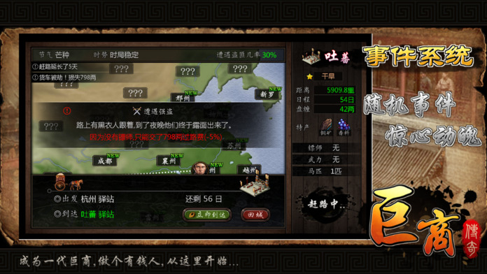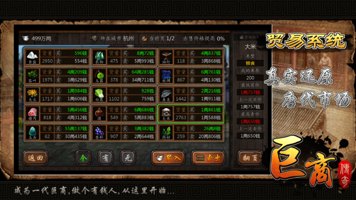 2、强大的物价模拟系统,不同地区都有着物产与物价差异,好好了解各地的区别与物价规律将对跑商非常有