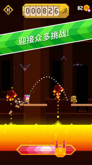 2、通过跳动在神秘的岛屿间探索并寻找宝藏,避开危险,挑战不同的游戏场景。