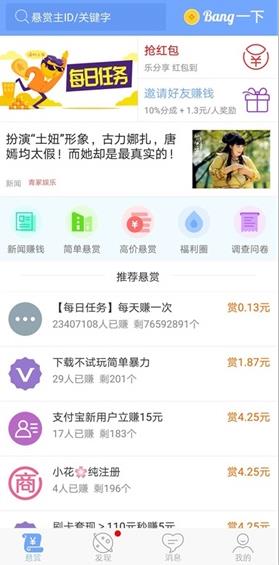 众人帮每天一万多个悬赏让你赚个够,随时随地,躺在家里,轻松手机赚钱!