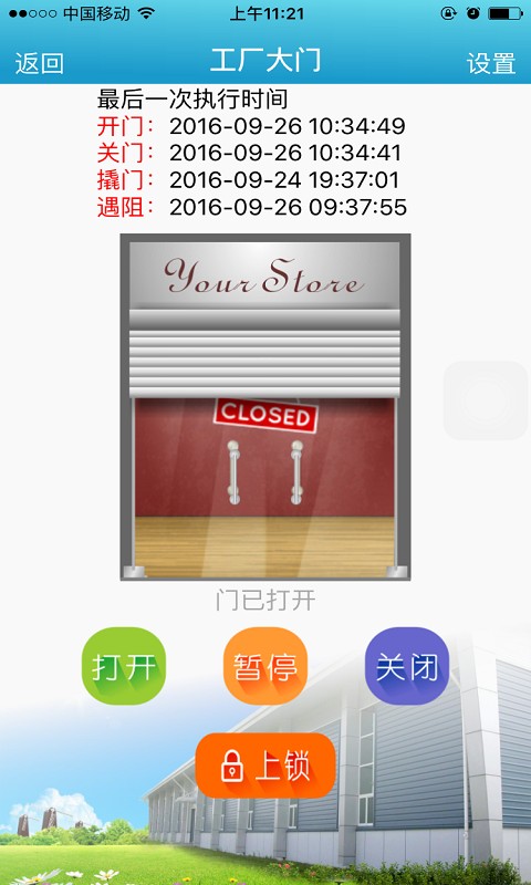 2、软件可实时显示卷闸门的位置状态,显示开关门时间等信息。