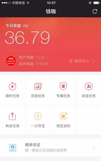 钱咖是一款火爆的手机赚钱app,用户们只需要动动手指就可以轻松的赚到钱,无需大量的操作以及步骤,让你能够领到零花钱,有兴趣的伙伴快来下载吧。