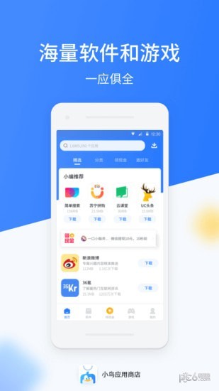小鸟应用商店app是一款应用商店类app。用户可下载自己所需要的应用,小鸟应用商店app也会给用户推荐优质应用,帮助用户寻找到更多好玩、新奇、有用的app。