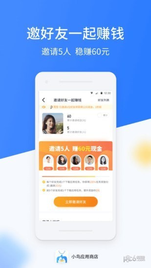 邀好友一起赚钱,邀请5人,稳赚60元
