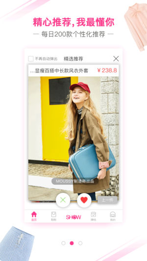 2:一键开店,注册同时一键开通自己的女装小店,分享你的流行态度,轻松愉快地变美。