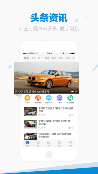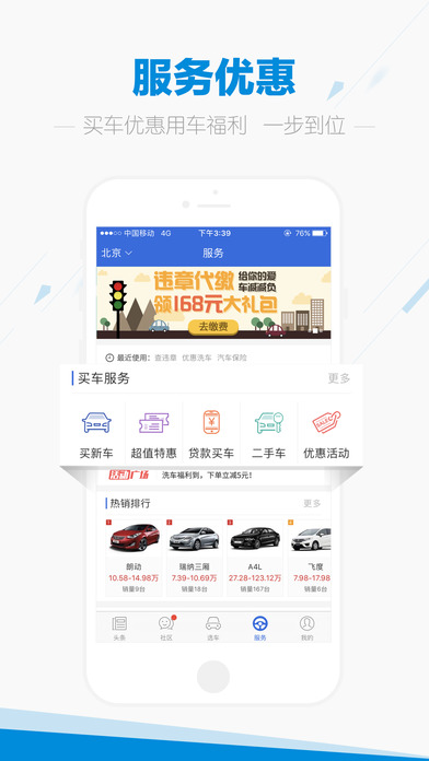 接入易车商城、惠买车、二手车、贷款、保养、违章查询等服务,带你开启简单汽车生活。