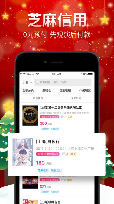 隆重推出「芝麻信用·先看后付」,与芝麻信用合作,先看演出后付款,观演结束后自动结账;