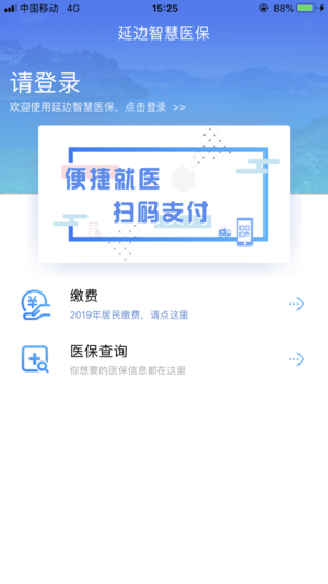 2、输入身份证号码,刷脸登录后,进入缴费主页面。