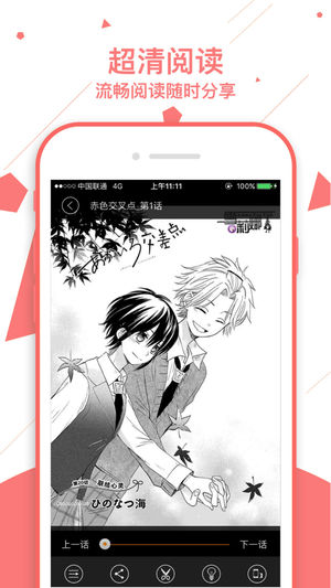 在线+脱机阅读,清晰画质 在线+脱机阅读,从此告别蜗牛速,没有网络也能想看就看;独特的图片处理技术,节省更多空间,高清晰低内存的完美漫画,带给你别具一格的阅读体验。