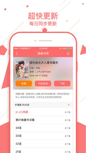 收录6W+本漫画库,追新神速 上万部国内外(日韩,欧美,港台)完美漫画,各类题材(热血,搞笑,魔幻等)阿全方面覆盖;资源内容每日更新, 紧贴网络进度,实时更新提醒,让你追漫0等待。