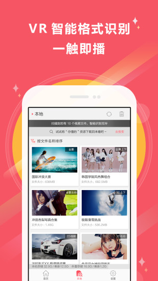 2. 【新增】 本地视频智能格式识别,一触即播,让VR看片更简单。