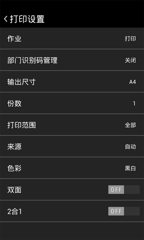 可对多个打印设置项目进行配置,如色彩模式、页数以及双面打印。