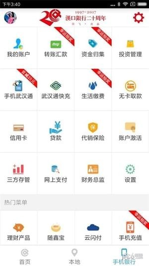 汉口银行手机客户端是汉口银行官方推出的掌上银行app。有了它,客户可以在手机渠道上办理银行金融业务,还有很多其他便捷服务,让您轻松享受移动金融新生活!赶快下载体验吧!