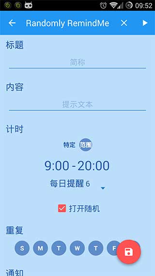 随机提醒与别的类似应用的最大的不同之处在于这个应用的提醒可以是随机化,