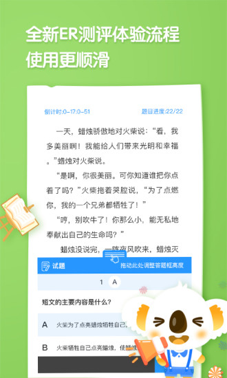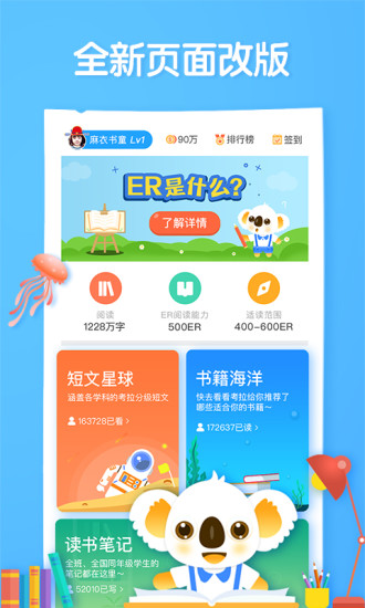 考拉阅读学生端app精确定位学生ER阅读能力。