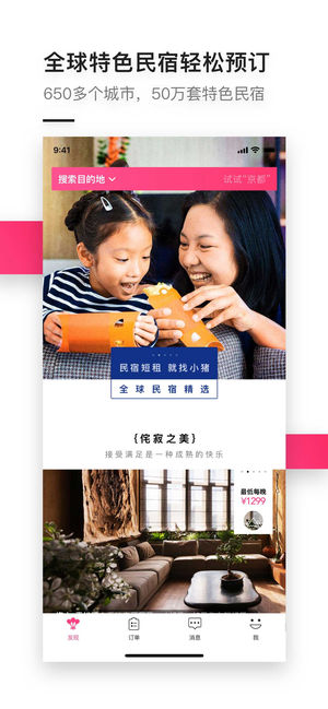 小猪在国内400座城市及海外252个目的地拥有50万套优质房源,包括别墅、民宿、树屋、花店、剧院、书店等,让旅途中的你充分感受住宿之美、人情之暖、分享之乐。