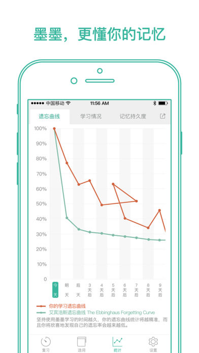 1. 你的遗忘曲线:真实反映了你在每个阶段对所学习单词的遗忘率;