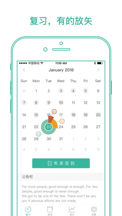 墨墨背单词以图表的方式记录了你每日复习的点点滴滴,每每回顾,你都会有一种成就感,并配合丰富的奖励策略有效的督促你更好的坚持复习,墨墨背单词包括三大图表统计系统: