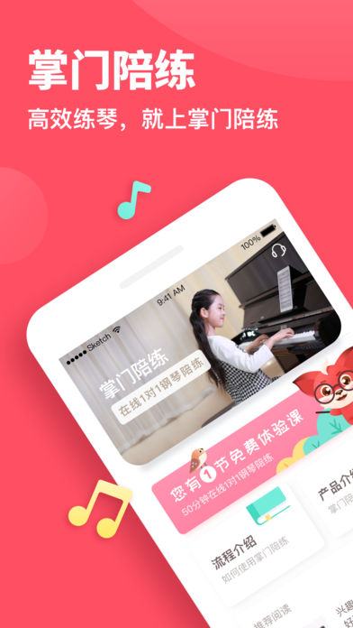 掌门陪练隶属掌门1对1,专注于在线陪伴4-14岁孩子的钢琴、小提琴练习,通过一对一在线视频方式,及时解决孩子错音,节奏等问题,让孩子爱上练钢琴、小提琴,使孩子练琴更高效的个性化教育平台。