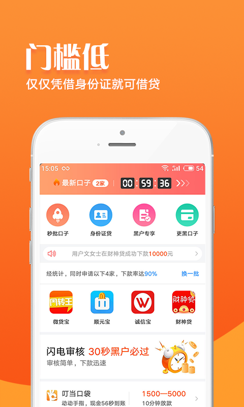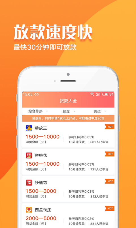 2. 下款无忧:海量贷款产品每天更新,月利率低至0.3%,1分钟放款,还款期限灵活;