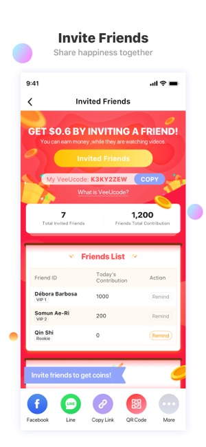 VeeU为一款海外短视频APP,用户利用碎片化时间看短视频并可获取奖励。