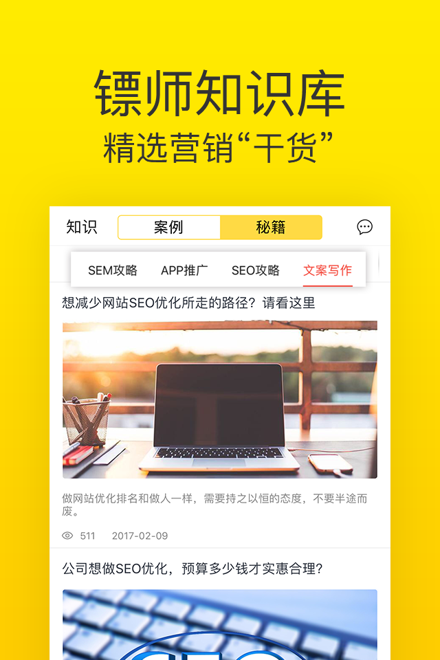 镖狮是北京发镖网络科技有限公司打造的一款全新营销推广软件,本作有营销大咖7 x 12小时,免费为你出谋划策,并为你找到"靠谱"的服务商。需要的快点下载吧。