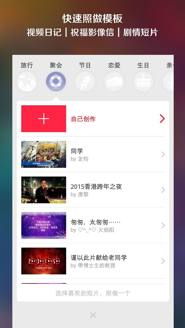 你可以在这里依照不同种类的模板,快速简单地制作一部美好的视频短片: