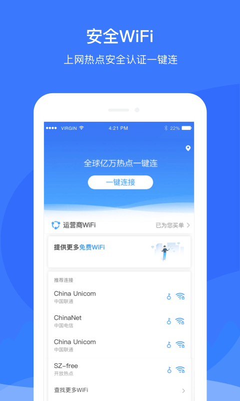 运营商(CMCC/ChinaNet/ChinaUnicom/and-Business)热点随心用,稳定安全;