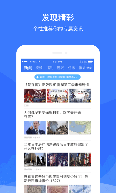 时事新闻、娱乐八卦、搞笑视频、各类休闲游戏个性化推荐,让你的生活更精彩!
