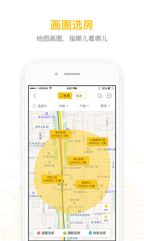 3. 地图找房:附近房源一目了然,地铁找房、画圈找房、通勤找房,实用便捷;