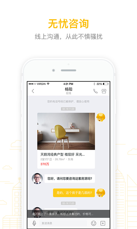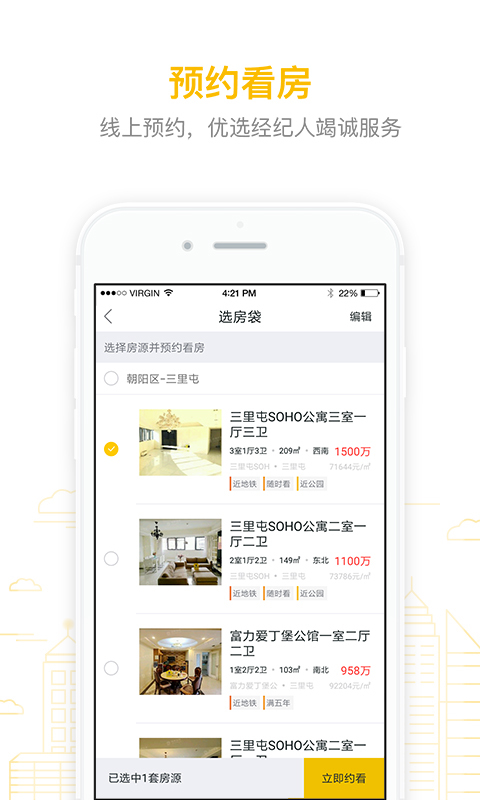 2. 中意房源一键约看,随时随地,随心爱聊,房源动态尽在掌握,好房不会错过;