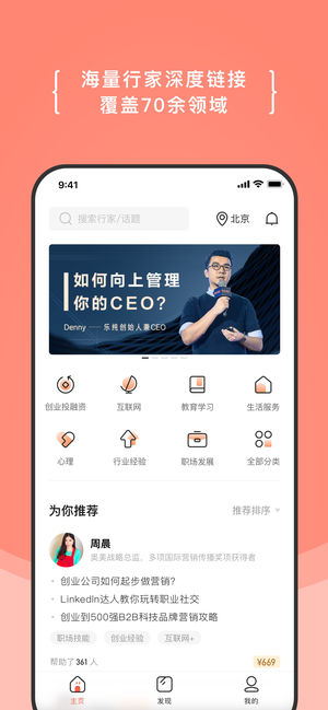 找到行家:职场、创业、教育、理财、艺术、健身、时尚各领域大牛等你来约