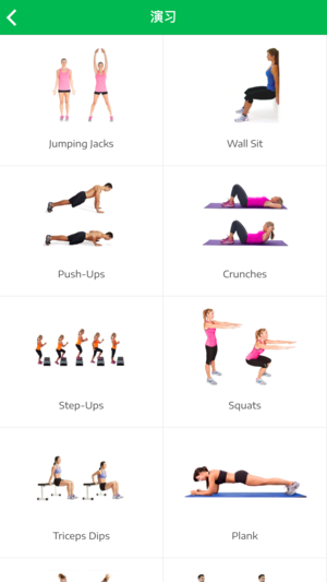 每天您只需要花费7分钟就可以达到调理身体,强健体魄的效果。每个动作30秒,总共12种动作,动作间有10秒的休息时间,您所需要的仅仅是一把椅子或者一面墙壁。您可以根据时间来重复训练。